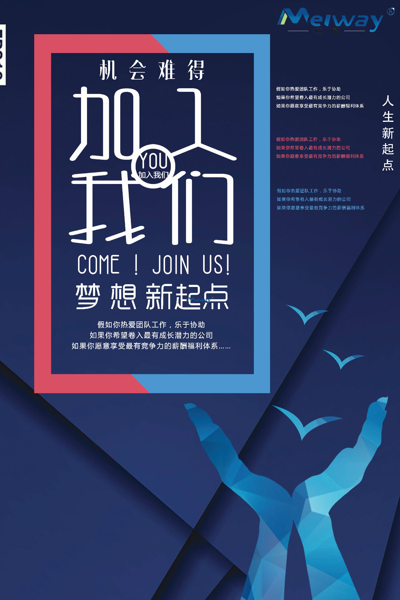 邁威在飛速發(fā)展的同時(shí),期待有更多的有志之士能夠加入到邁威,為公司注入源源不斷的活力,為實(shí)現(xiàn)企業(yè)的遠(yuǎn)大目標(biāo)而共同努力!